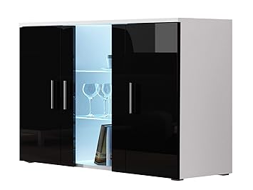 Vladon Sideboard Kommode Denjo Korpus In Weiss Matt Fronten In Weiss Hochglanz Und Schwarz Hochglanz Inkl Led Beleuchtung