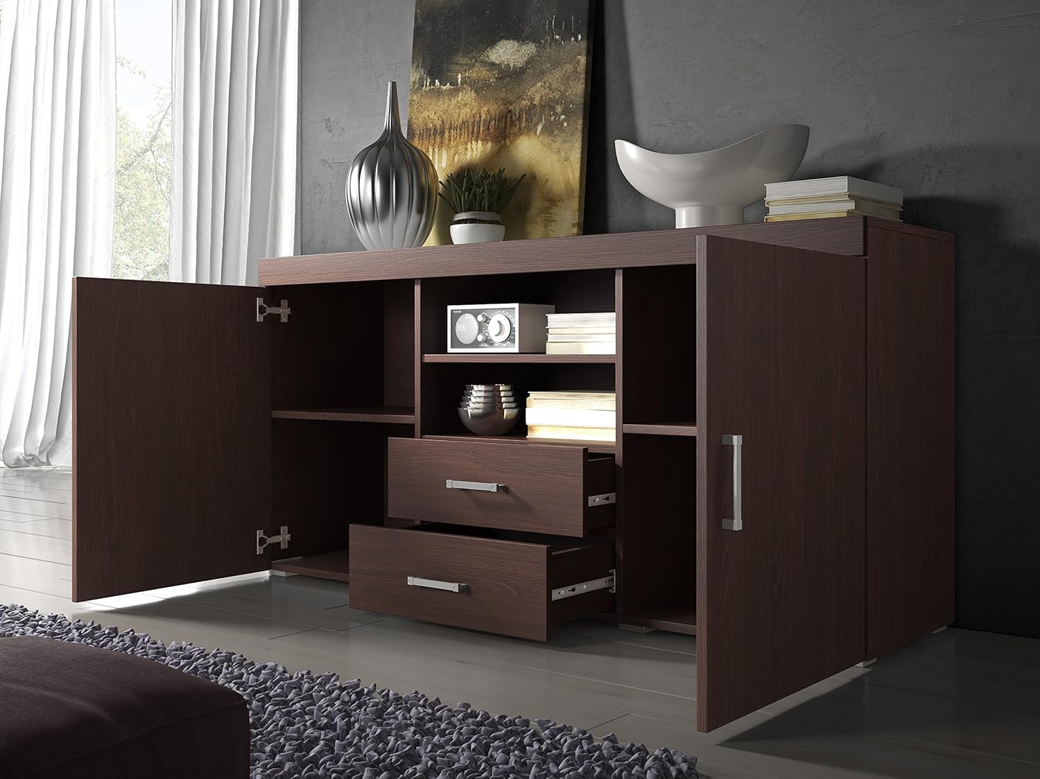 Sideboard 2 Trg Raven Von Forte Schlammeiche Weiss Schwarz