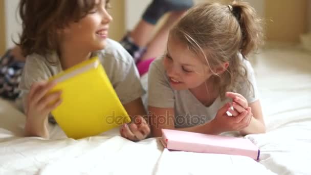Zwei Kinder Jungen Und Madchen Bruder Und Schwester Ein Buch Im Bett Tagsuber