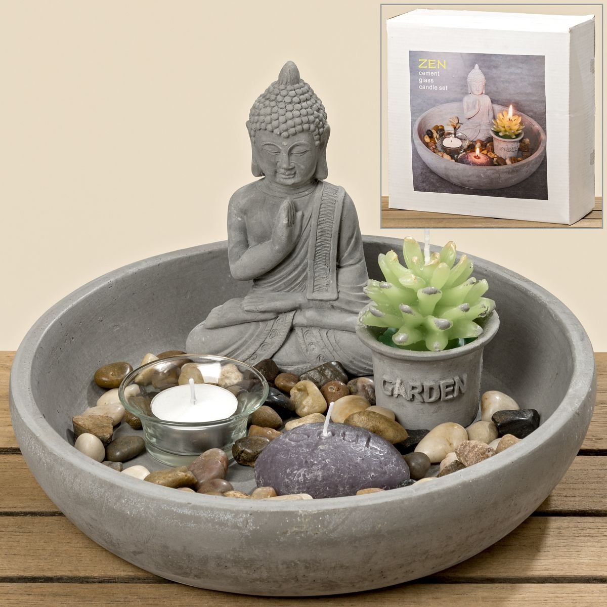 Zen Garten Deko Set Mit Buddha Und Kerzen 24x16x15 Cm