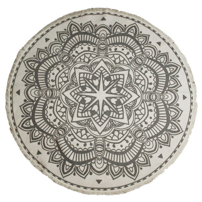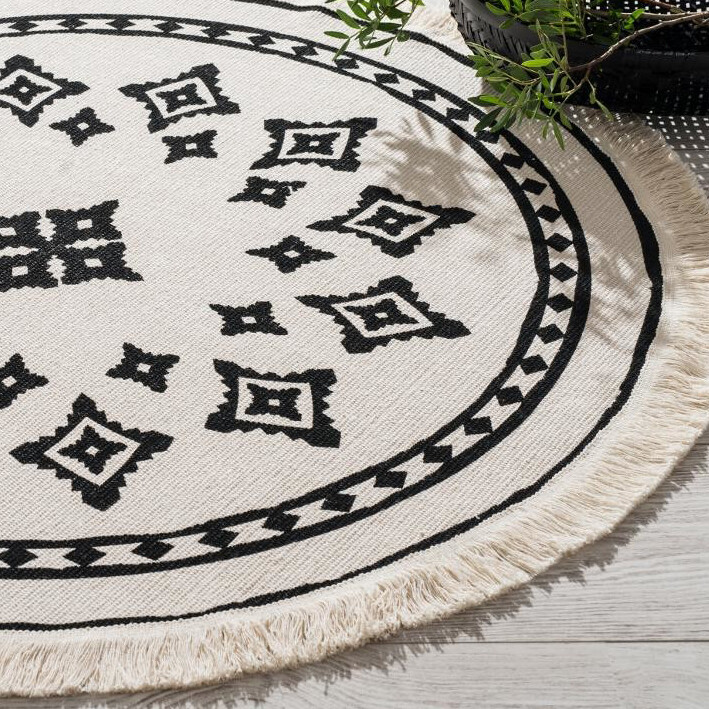 Teppich Rund Druckteppich Ibiza Baumwollteppich 120 Cm M Fransen Schwarz Natur