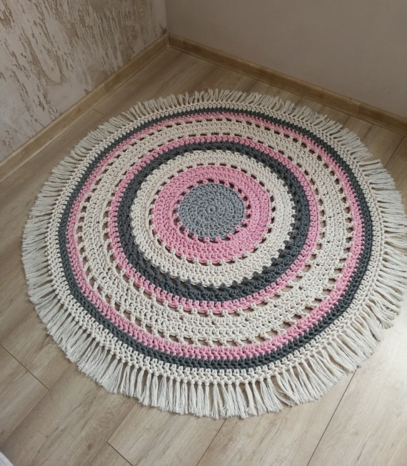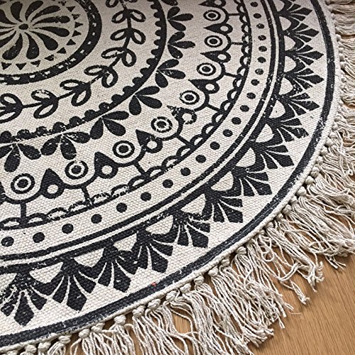Details About Teppich Rund Schwarz Beige 90 Cm Fransen Ethno Boho Nordic Scandi