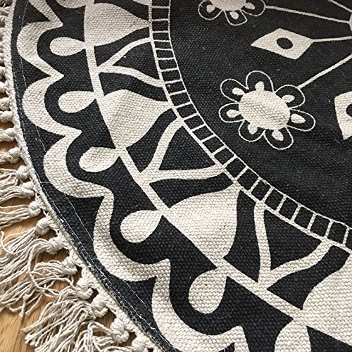 Details About Teppich Boho Rund Schwarz Beige120 Cm Fransen Ethno