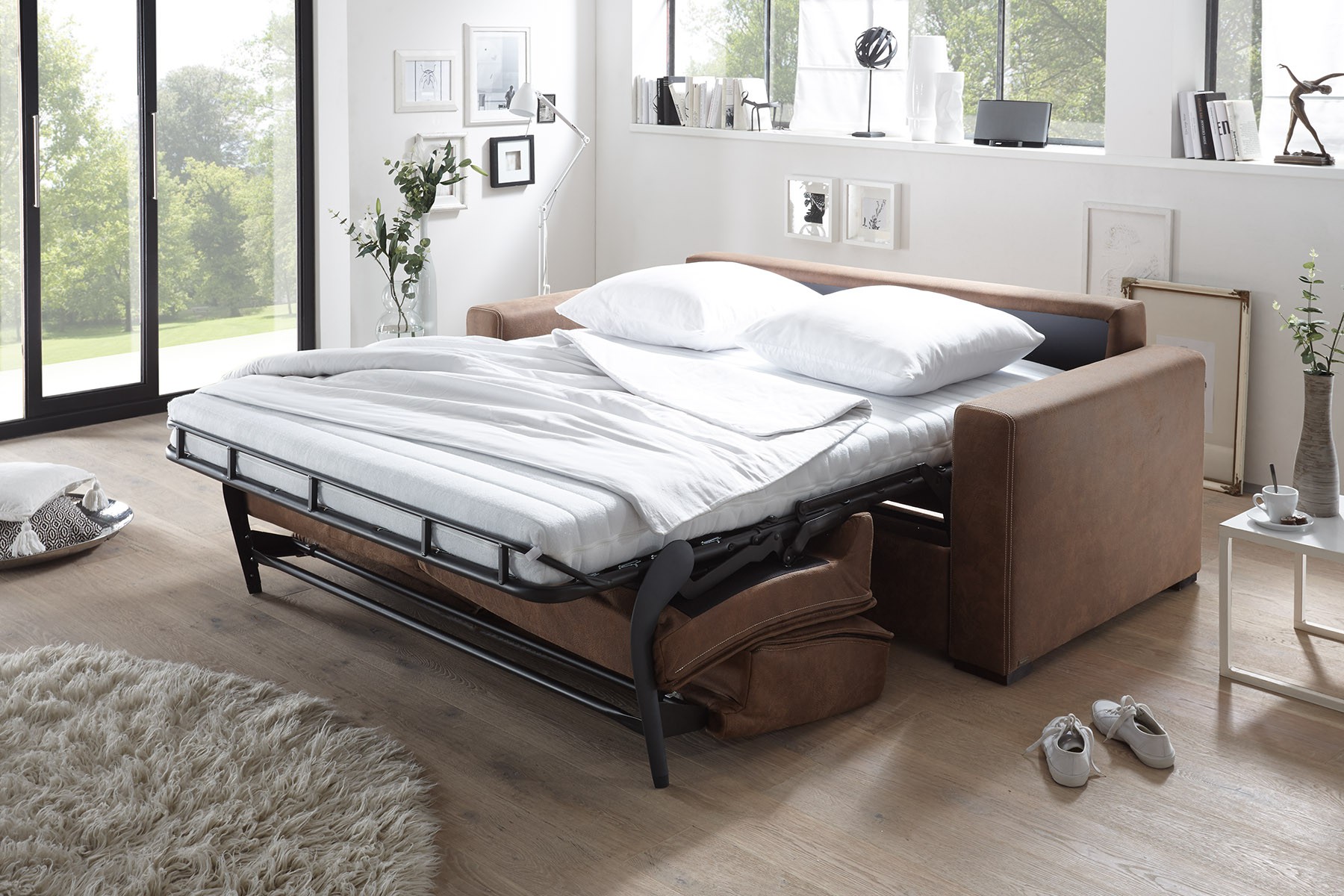 Reposa Siena Schlafsofa Farbe Mocca 2 Sitzer Langsschlaferfunktion Bezugstoff Microfaser Antikoptik Kontrastnaht Beige Polsterung Und Matratze