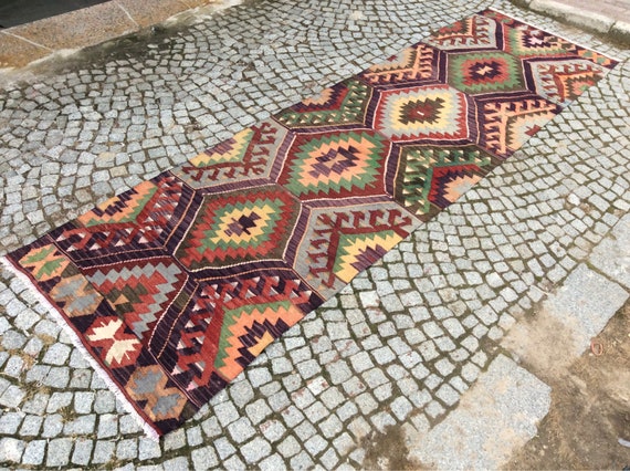 3 X 10 Laufer Turkischen Kelim Laufer Boho Teppich Jahrgang Laufer Turkischen Kelim Laufer Turkische Teppiche Handgewebte Teppiche Vintage