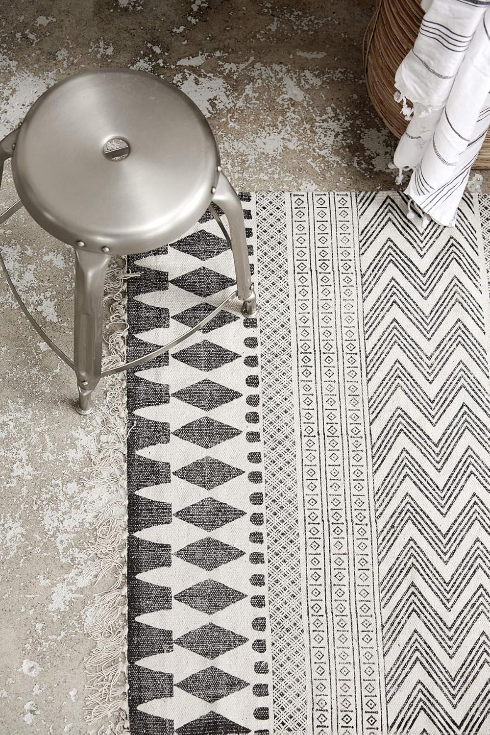 Mynes Home Teppich Laufer Waschbar Schwarz Weiss Modern Designer Design Boheme Boho Stil Rutschhemmend Geeignet Fur Kuche Bad Wohnzimmer Flur 120cm