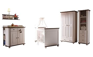 Babyzimmer Set Luca 5tlg Wickelkommode Babybett Standregal Wandregal Kleiderschrank 3 Turen Pinie Weiss