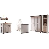 Landhaus Babyzimmer Komplett Set 5 Chiasso 22 Massiv Lava Weiss Mit Kleiderschrank 2 Trg Anstellregal Wandregal Wickelkommode Babybett