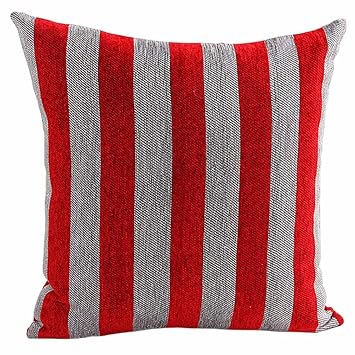 Nunubee Nordischen Stil Gestreifte Chenille Sofakissen Kissenbezuge Kissenhulle Dekokissen Kissenbezug 45 45cm Grau Und Rot