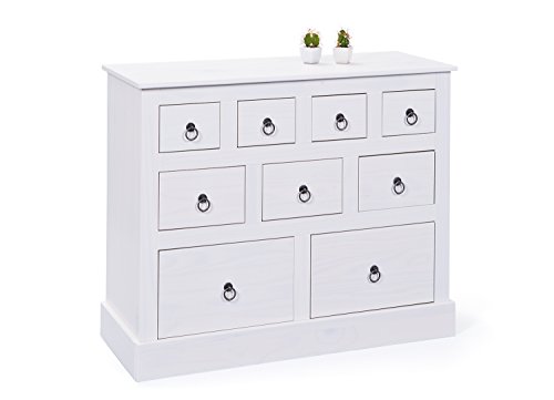 Inter Link Maritim Style Kommode Schubladenkommode Mehrzweckschrank Anrichte Sideboard Kiefer Massiv Weiss Lackiert