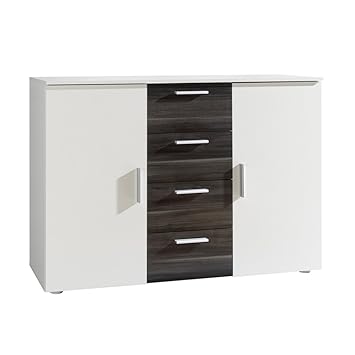 Kommode Carolin Weiss Nussbaum Schwarz 4 Schubkasten