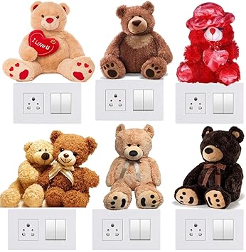 Pixel Print Vinyl Teddy Bear Wall Stickers For Light Switches Set Of 6