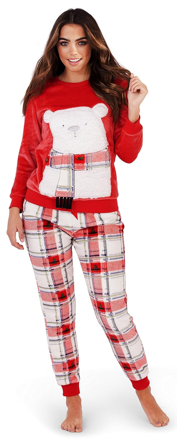 Ladies Luxury Plush Fleece Polar Bear Lounge Pyjamas Amazon