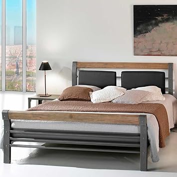 Bett Lederkopfteil 140x200 Cm Eiche Massiv Industrial Stahlgestell Schwarz