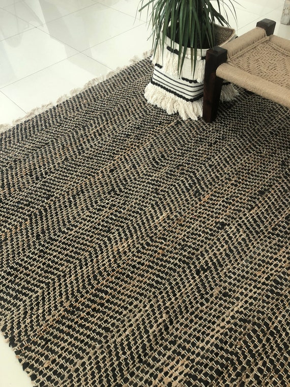 Jute Rug Scandinavian Rug Modern Farmhouse Area Rug 230 X 160 Leather Rug Boho Teppich Boho Rug Recycled Rug Earth Friendly Rug