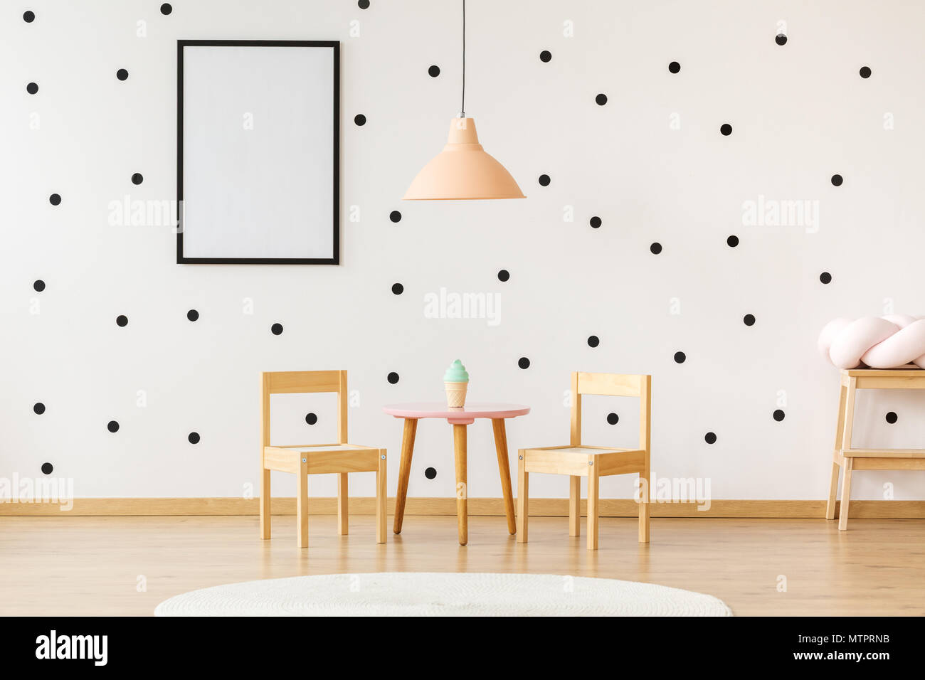 Mockup Von Poster Auf Punkte Tapete Im Kinderzimmer Mit