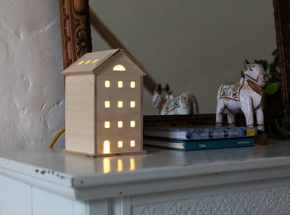 Holz Lampe Nachtlicht Kinderzimmer Lampe Holz Haus Rustikale Nachttischlampe Eco Beleuchtung Led Lampe Boho Lampe