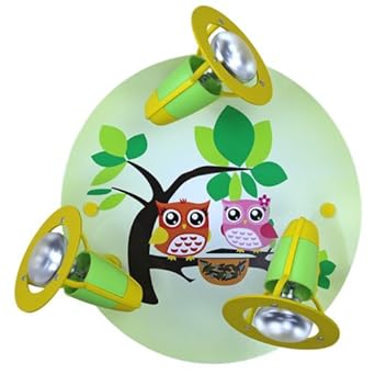 Elobra Kinder Lampe Rondell Eulen Familie Deckenleuchte Kinderzimmer Holz Lindgrun 128251