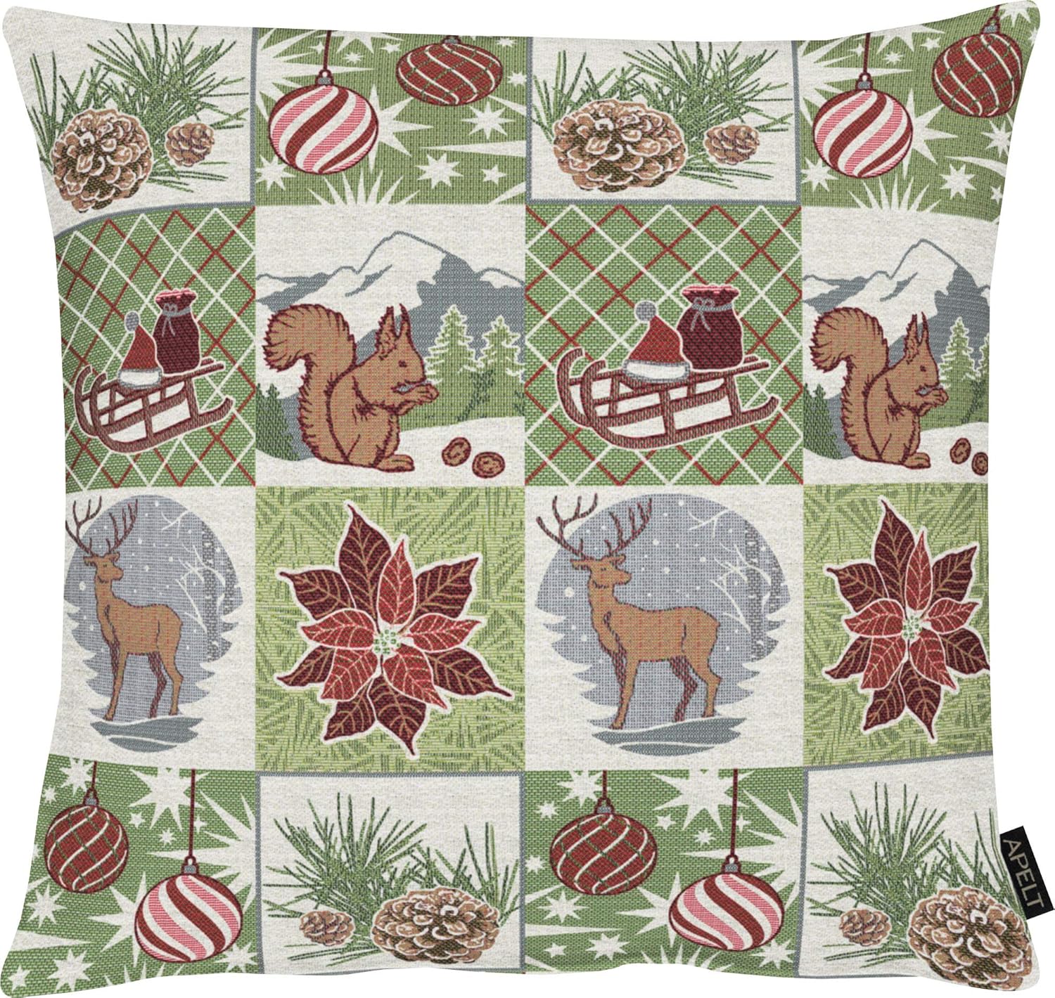 Apelt Kissenhulle Winterwelt Gobelin Jacquard Grun Rot Grosse