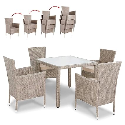Casaria Poly Rattan Sitzgruppe Beige Grau 4 Stapelbare Stuhle 1 Tisch 7cm Dicke Auflagen Sitzgarnitur Gartenmobel Set