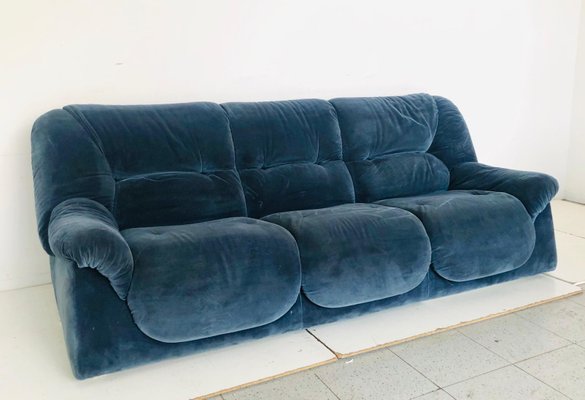 Blaues 3 Sitzer Sofa Aus Samt 1970er