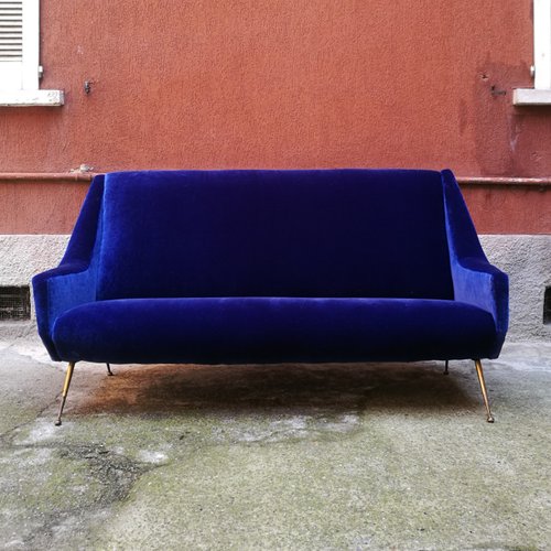 Italienisches Sofa Aus Blauem Samt Messing 1950er