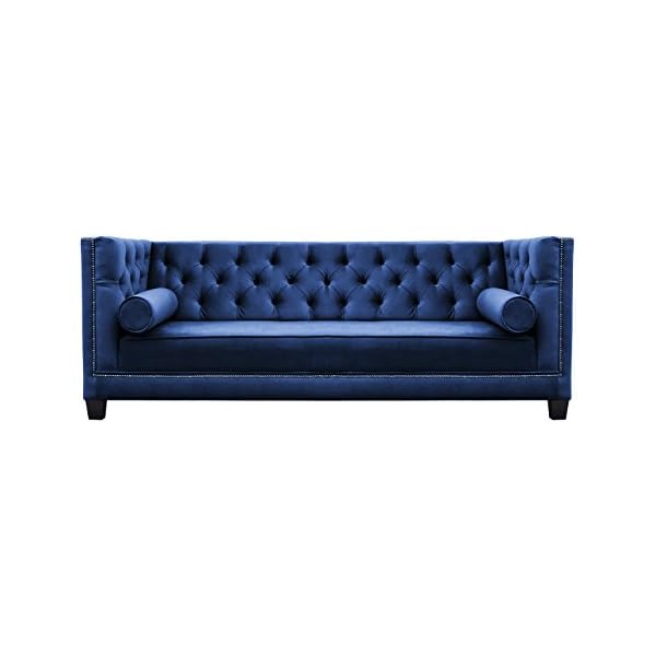 Navy Blau Elegante 2 Sitzer Nieten Samt Sofa Chesterfield