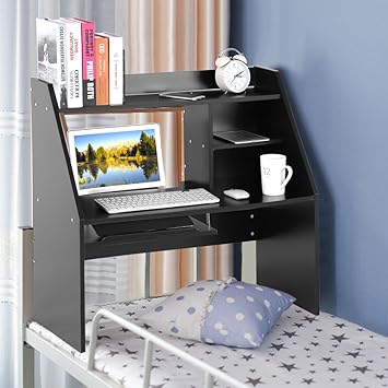Yaheetech Schreibtisch Mit Cd Regal Computertisch Schwarz Pc Tisch Mit 4 Rollen 80 X 60 X 100 Cm