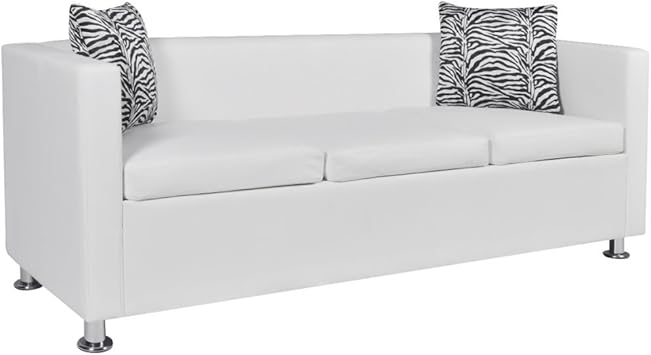 Festnight Modern Faux Leather 3 Seater Sofa For Living Room White