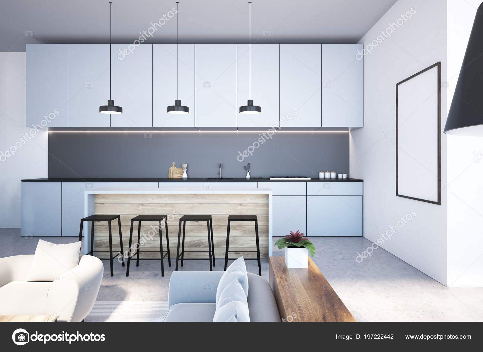 Graue Und Weisse Wand Kuche Interieur Mit Weissen