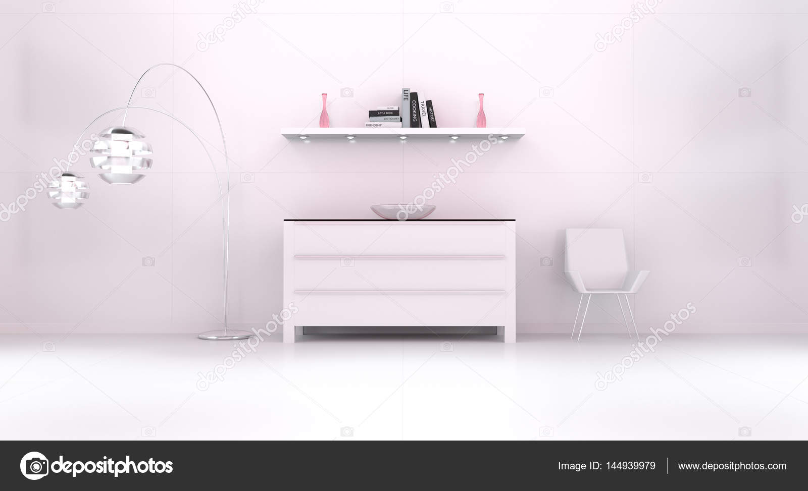 Moderne Weiss Rosa Interieur Mit Kommode Und Regal 3d R