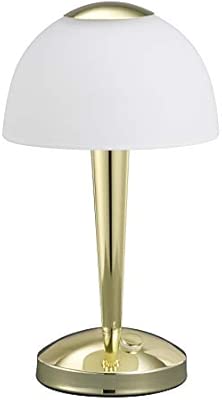 Trio Leuchten Led Tischleuchte In Messing Poliert Glas Weiss Satiniert Touche Dimmer Mit 3 Helligkeitsstufen Inklusive 1 X 5w Led Hohe 28 Cm