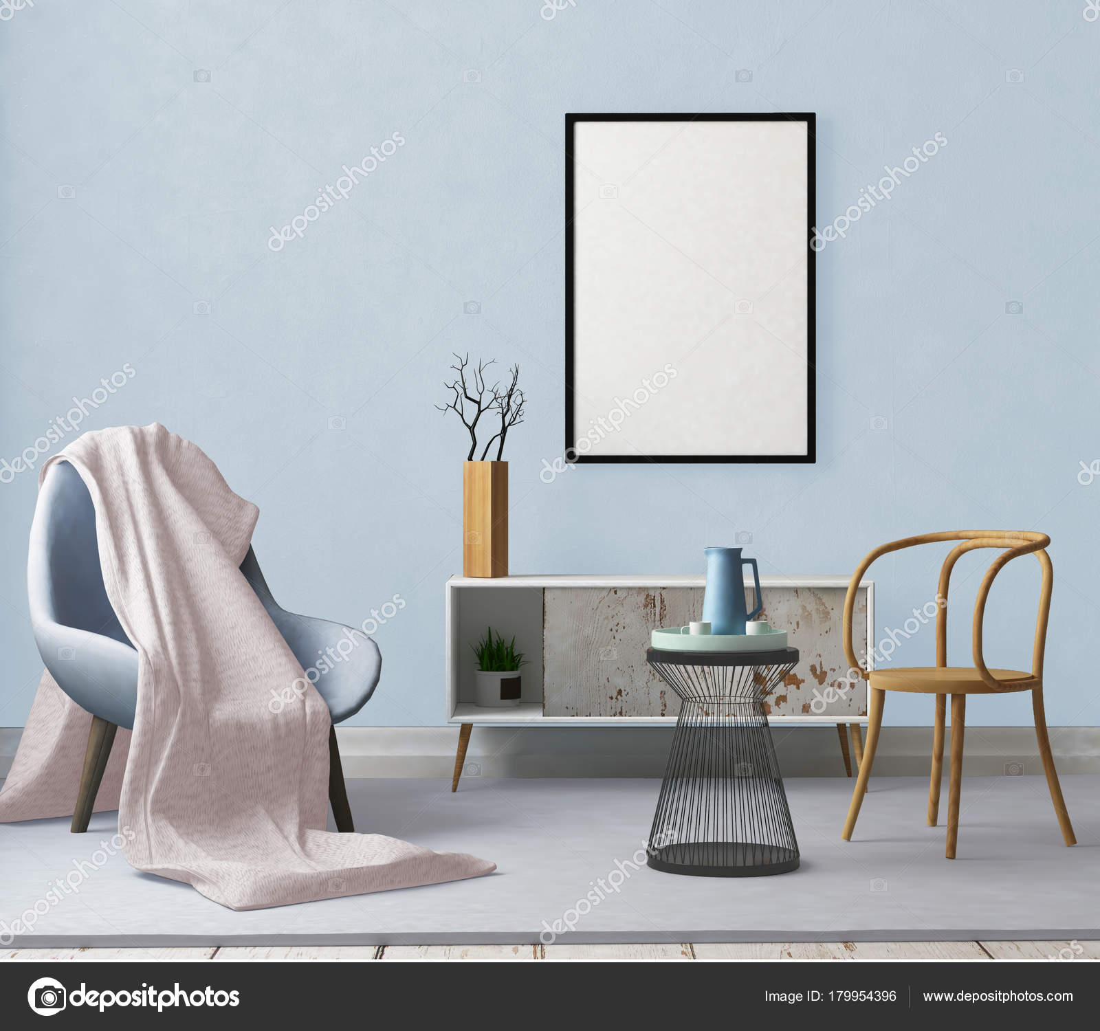 Mock Poster Einem Rahmen Wohnzimmer Stockfoto