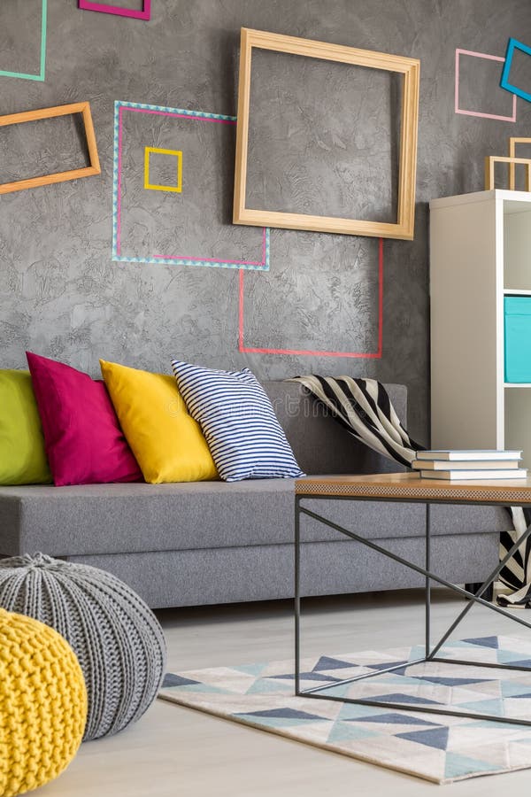 Wohnzimmer Mit Farbigen Rahmen Stockfoto Bild Von