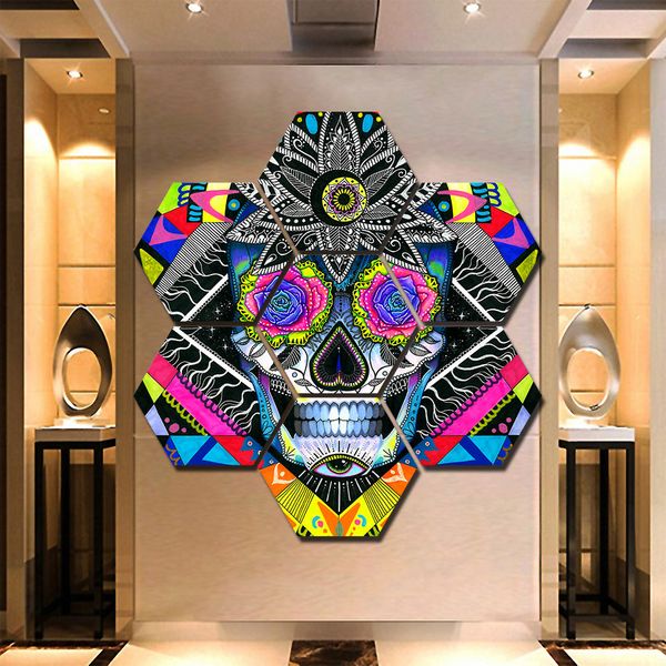 Grosshandel Modulare Leinwand Malerei Wandkunst Rahmen 7 Stucke Suger Schadel Bilder Drucke Halloween Schadel Thema Poster Wohnzimmer Wohnkultur Von