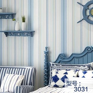 Mittelmeer Blau Vertikal Gestreifte Tapete Schlafzimmer