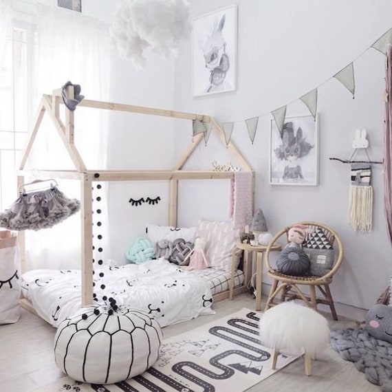 Toddler Bed House Bed Pine Wood Wooden Bed Montessori Bed
