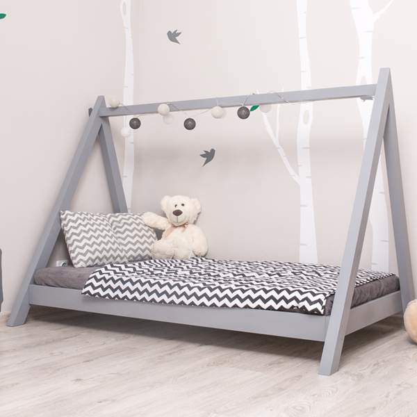 Kinderbett Tipi 90x200 Jugendbett Weiss Grau