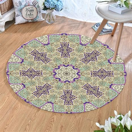 Ommda Teppiche Wohnzimmer Vintage Ethno Boho Teppich Rund