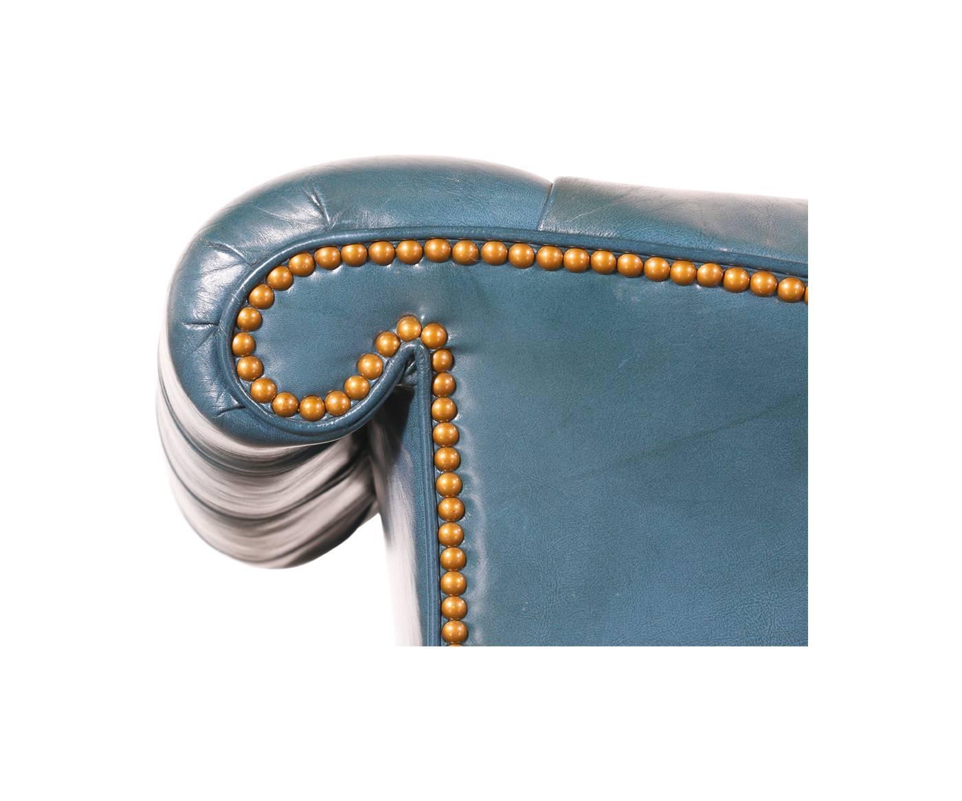 Vintage English Leather Teal Blue Chesterfield Sofa For Sale