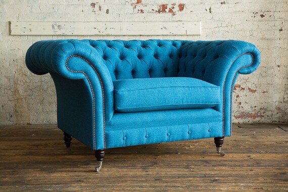 Details About Modern Handmade 3 Seater Teal Blue Wool Chesterfield Sofa Couch Chair Fabric