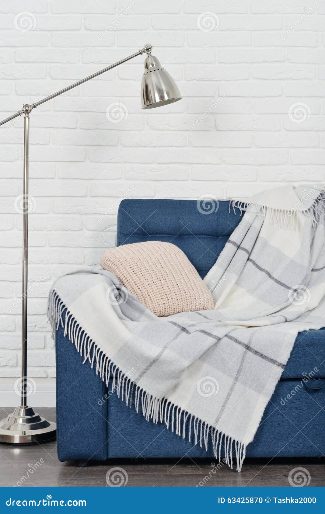 Blaue Couch Stockfoto Bild Von Metall Plaid Grau Modern