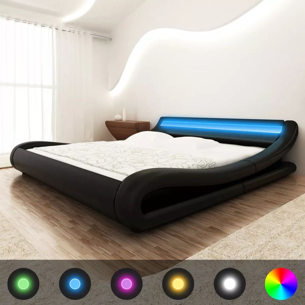Vidaxl Bett Mit Led Memory Matratze Kunstleder 140x200 Cm Schwarz Weiss