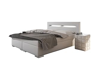 Sam Led Boxspringbett 200x200 Cm Berlin Kunstleder Weiss Bonellfederkern Matratze H3 Led Beleuchtung An Fussen Kopfteil